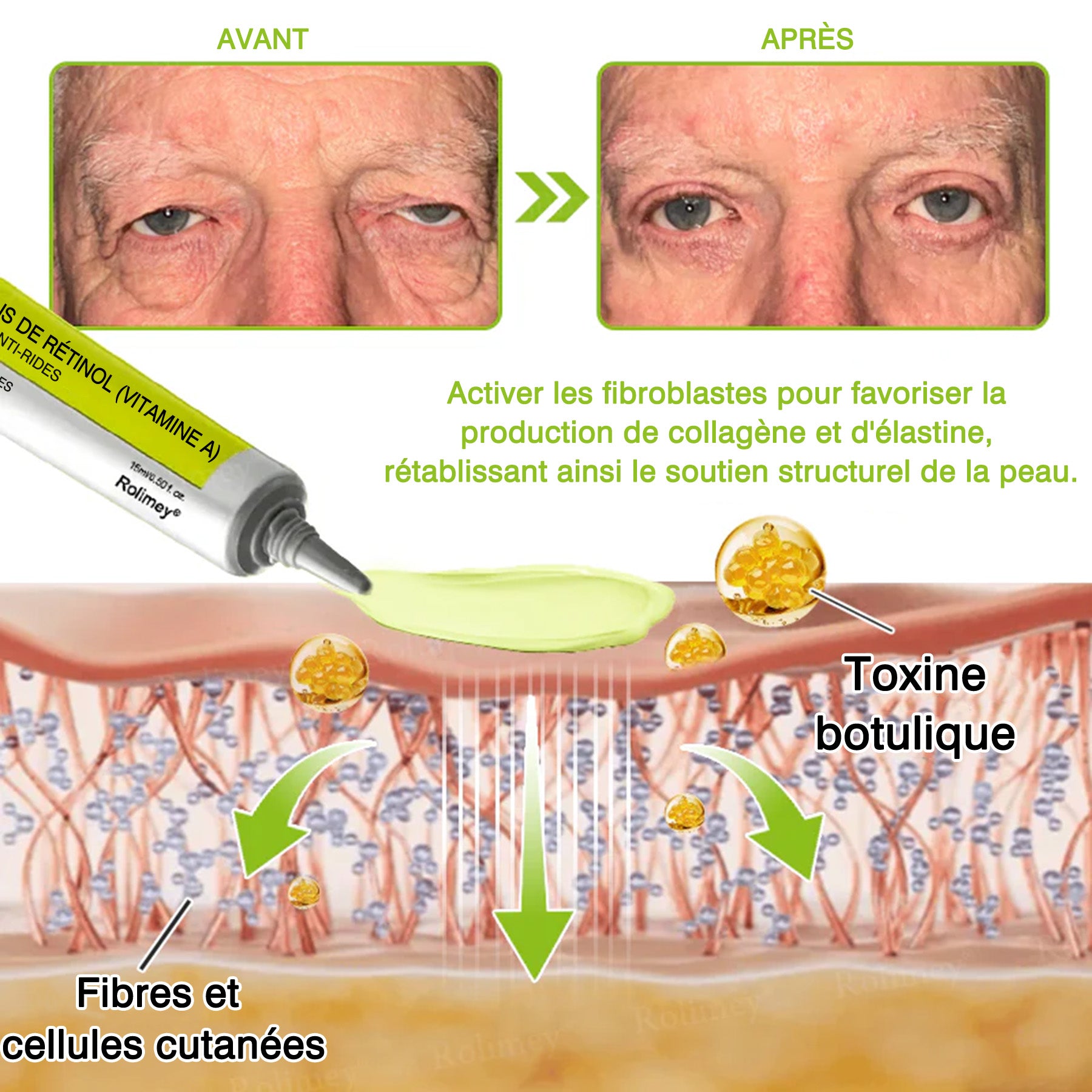 Rolimey® est conçu pour agir en profondeur, cibler le vieillissement à sa source et offrir une peau plus ferme, plus lisse et visiblement liftée en seulement quelques jours.